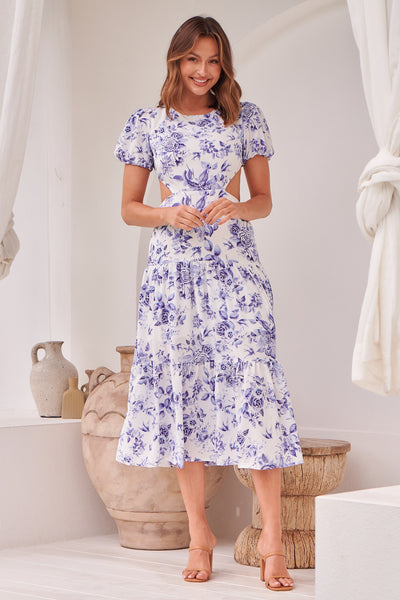 Paloma Chiffon Sky blue/Pink Floral Cross Over Dress