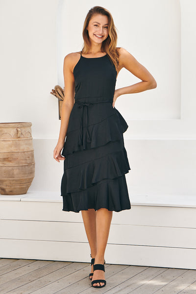 Sabina Chiffon Cross Over Black/Sage/Yellow Floral Print Dress