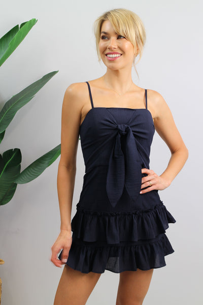 • Mariana Tie front Frill dress Navy