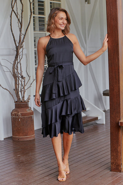 Kitty Chiffon Navy Tiered Ruffle Evening Dress