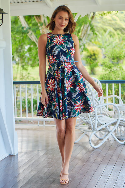 Escend L/Sleeve Pink Floral Tie Front Frill Dress